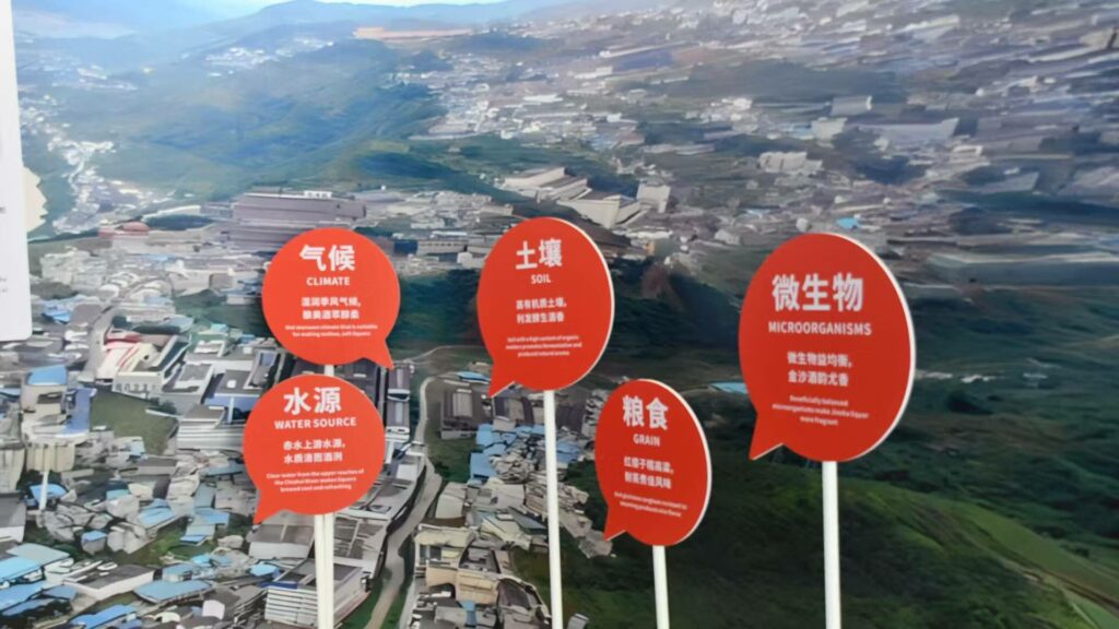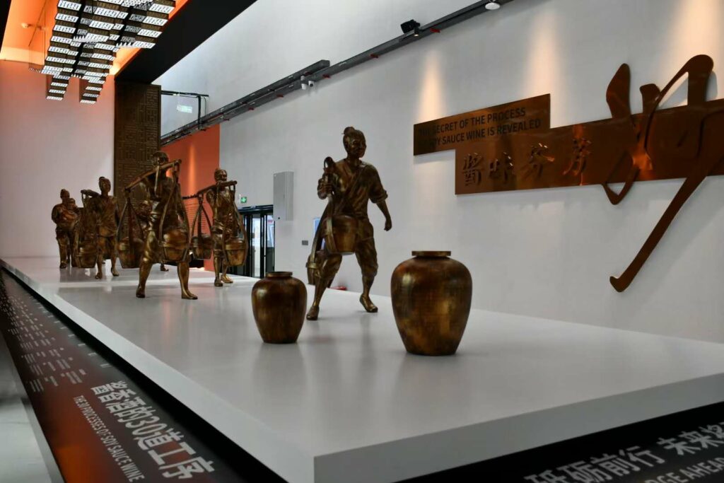 采访团来到了金沙酒业,首先参观了酱酒文化博物馆,了解中国酿造的起源与发展,从糟烧到大曲酒,从天锅蒸馏到分体蒸流馏,高粱酒的起源,泥窖发酵的创立等。进一步从水源,气候,土壤,粮食,微生物等环节,讲解赤水河流域的酿造优势,独特的工艺流程,以及金沙酒的崛起和在全国各地的酱酒布局与发展。