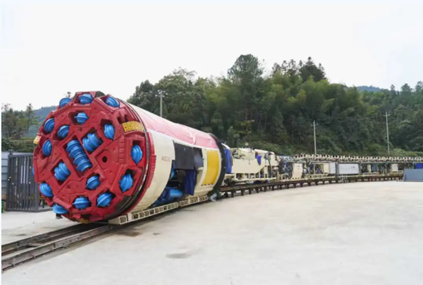 “天子山号”隧道掘进机整机长88米、重240吨,刀盘开挖直径3.53米,最大坡度可达49‰,需完成8975米全程上坡掘进任务。