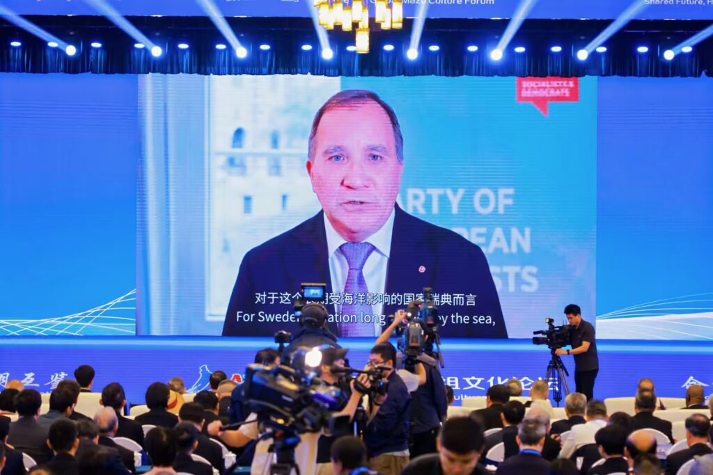 瑞典前首相斯特凡·勒文、联合国发展系统驻华协调员常启德、巴西圣保罗市议员乔治·哈托发来祝贺视频。