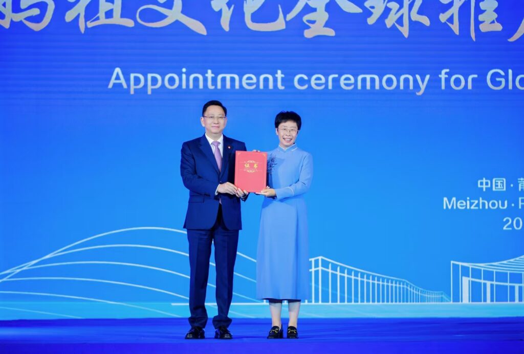 举行妈祖文化全球推广大使聘任仪式,全国妇联副主席(兼)、中央民族大学党委委员、教授蒙曼受聘为妈祖文化全球推广大使。