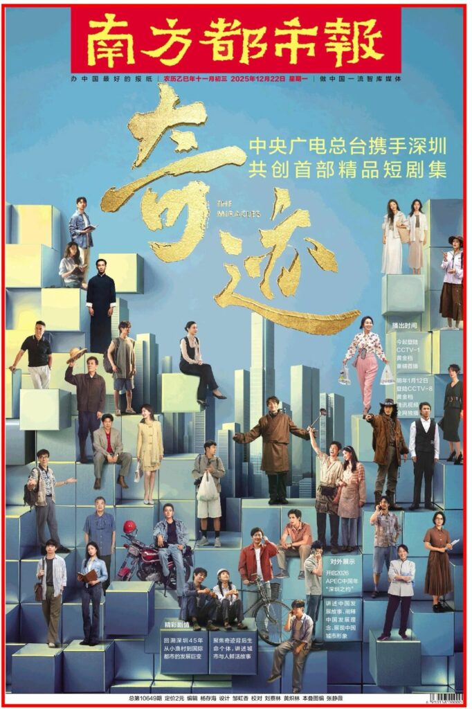 此外,2025年是深圳经济特区成立45周年。《奇迹》用短小精悍的短剧集形式,回溯深圳45年来从小渔村到国际化都市的发展巨变。2026年,亚太经合组织(APEC)第三十三次领导人非正式会议将在深圳举行,这部以深圳经济特区发展历程中的人与事为原型和素材、讲述中国式现代化奇迹和中国人民追求美好生活故事的精品短剧集,也将开启2026APEC中国年“深圳之约”的文艺序章。
