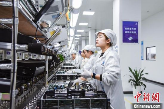 在湘江鲲鹏生产车间,服务器和PC机两条生产线正有条不紊地运行。 柯鸣 摄