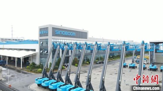 在星邦智能研究院门口,各种型号的高空作业平台一排排整齐挺立。  星邦智能供图