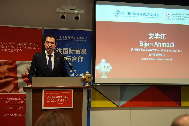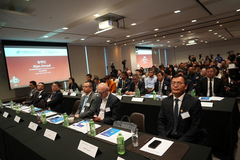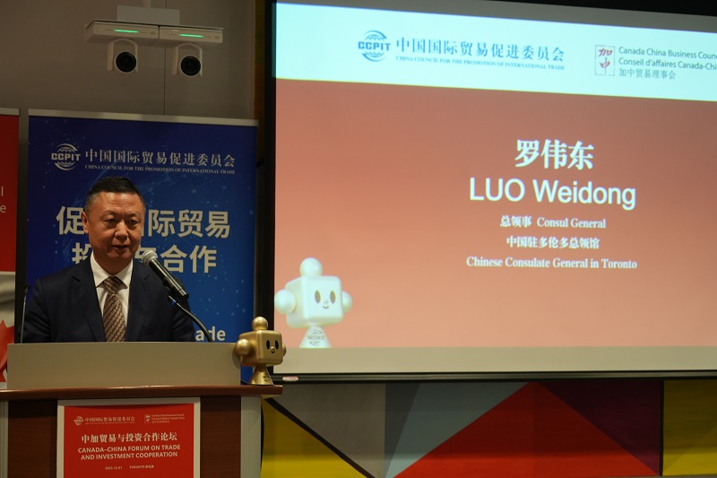 【加拿大视传媒多伦多报道】12月1日,中加贸易与投资合作论坛在加拿大多伦多举行。中国贸促会会长任鸿斌、中国驻多伦多总领馆总领事罗伟东、加中贸易理事会执行董事兼首席运营官安毕江(Bijan Ahmadi)、多伦多地区贸易委员会会长兼首席执行官格尔森等出席活动并发表致辞。论坛吸引了来自中加两国政商界的150余名代表参加。