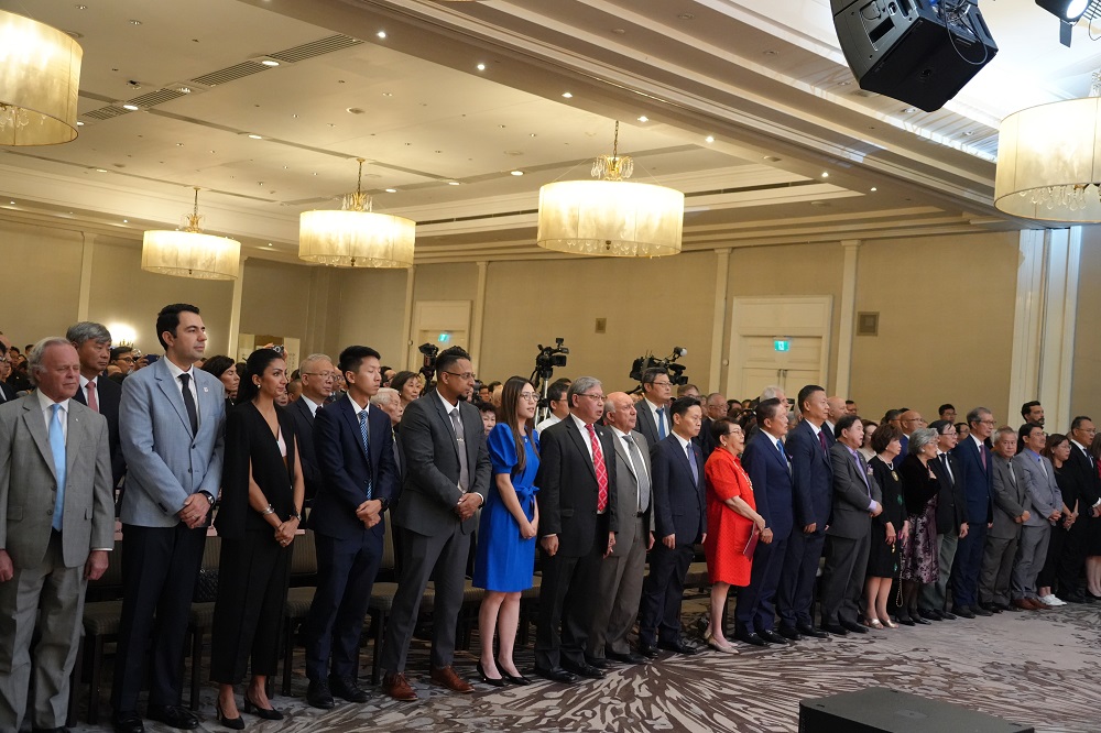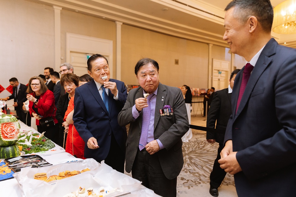 加拿大前参议员胡子修亦应邀出席并致辞。他高度评价中华人民共和国成立以来取得的历史性成就,赞赏中加两国在过去55年间不断深化的合作关系,并表示将继续积极推动两国人民之间的理解与友谊。