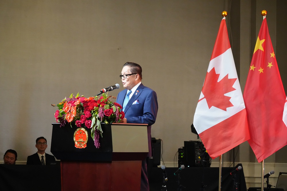 中国驻多伦多总领事罗伟东在致辞中指出,76年来,中国在中国共产党的坚强领导下,走出了一条独具特色的发展道路,经济社会成就举世瞩目。中国始终坚持和平发展,积极推动构建人类命运共同体,贡献全球治理新理念和中国智慧,展现了负责任大国的使命担当。