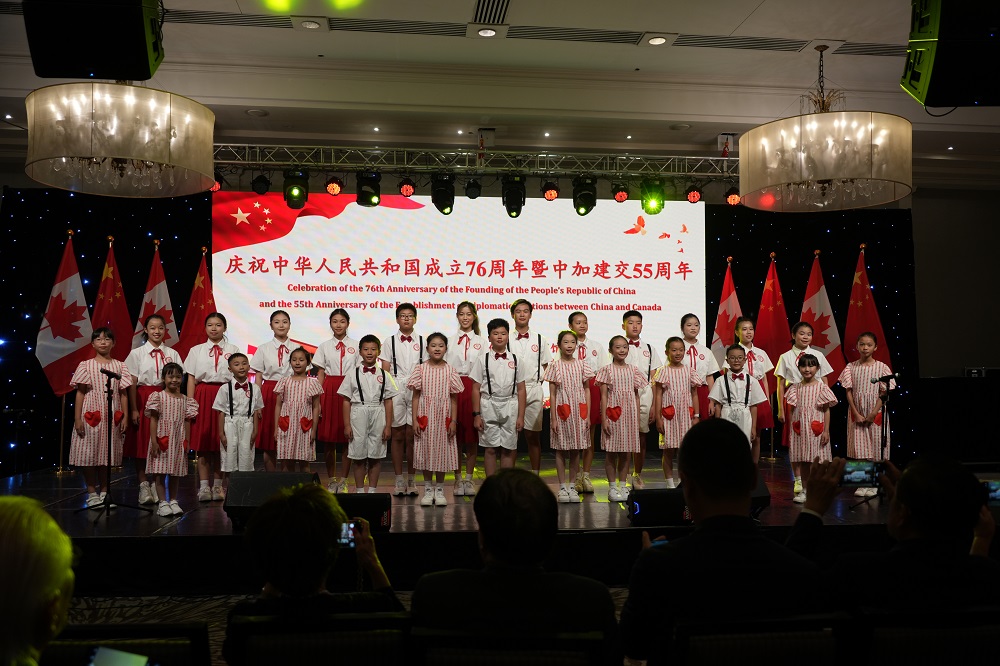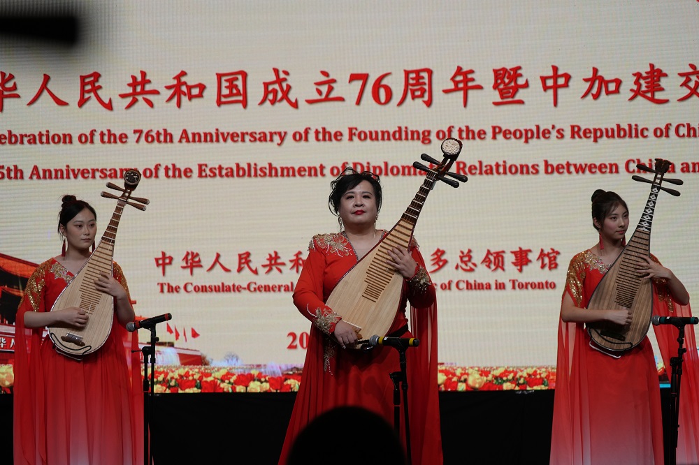 招待会现场播放了多伦多领馆精心制作的反映新中国发展建设成就及中加各领域交往的主题视频。来宾们共赏交响乐、民族舞蹈、童声合唱及传统文化展示,观看建交和抗战胜利80周年主题图片展,亲切交流,畅叙友谊。