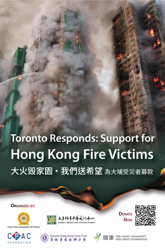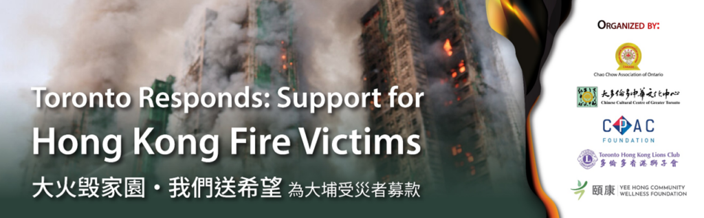 【加拿大视传媒报道】为支援香港大埔宏福苑重大火灾的受灾家庭,12月8日,加拿大安省潮州会馆、大多伦多中华文化中心、加拿大中国专业人士协会基金会、多伦多香港狮子会及颐康基金会等五家非营利机构,在万锦市政府会议厅共同宣布启动“大火毁家园 • 我们送希望”募款行动(“Toronto Responds: Support Hong Kong Fire Victims”)。
