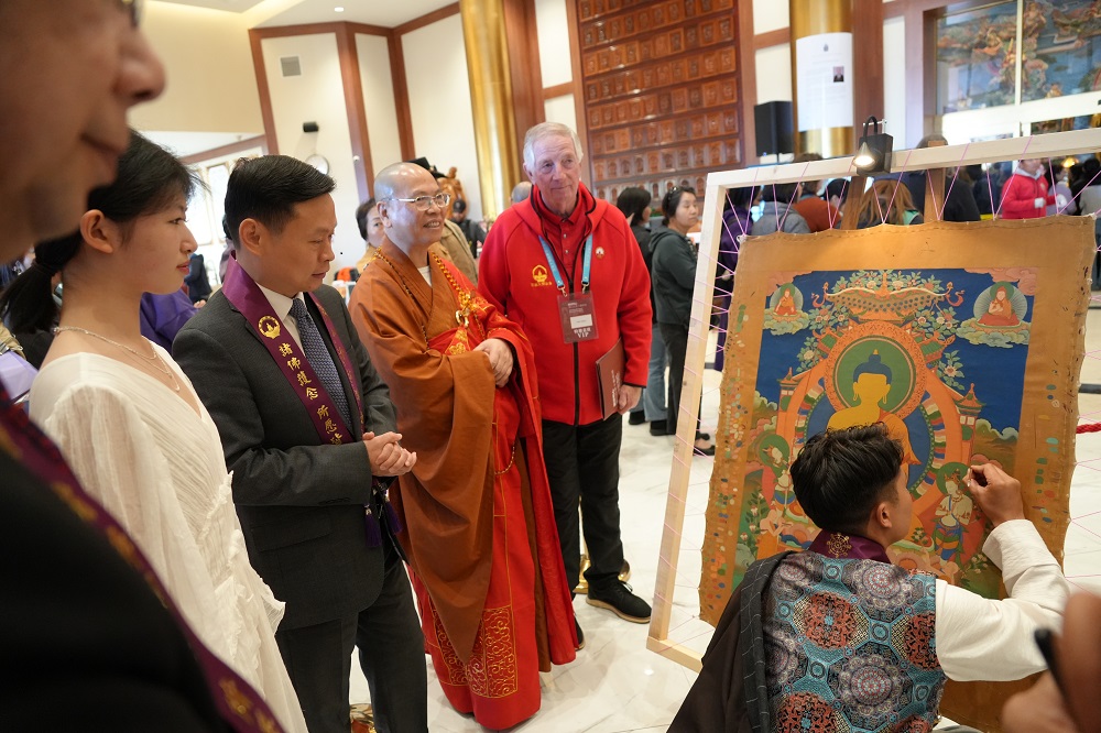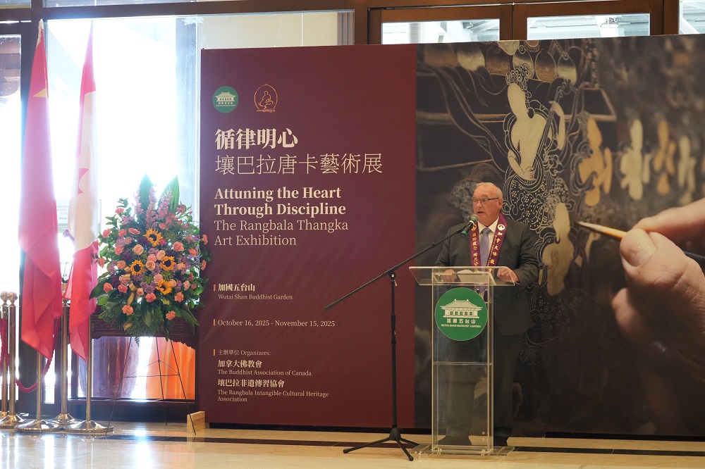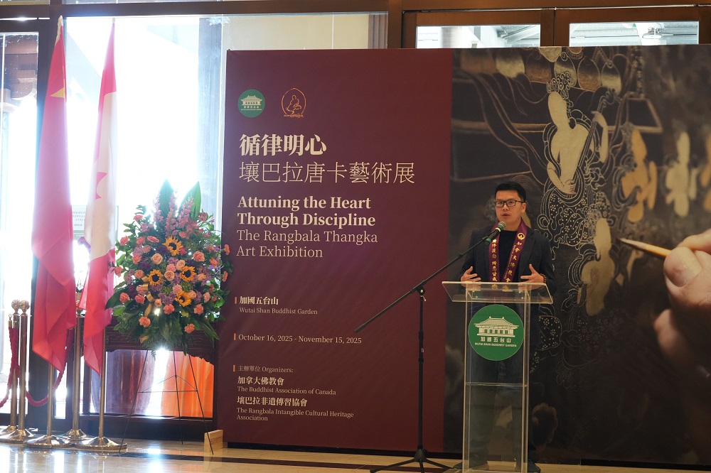 加拿大佛教会会长、加国五台山住持达义大和尚在开幕致辞中表示:“这是加国五台山首次举办大型艺术展览,意义深远。展览不仅展示了唐卡艺术的精神与技艺,更体现了加拿大佛教会弘扬佛教文化、促进中西交流的初衷与使命。我们希望未来有更多元、更具影响力的艺术展览在这里举行,让佛法之光照耀北美,利益众生。”