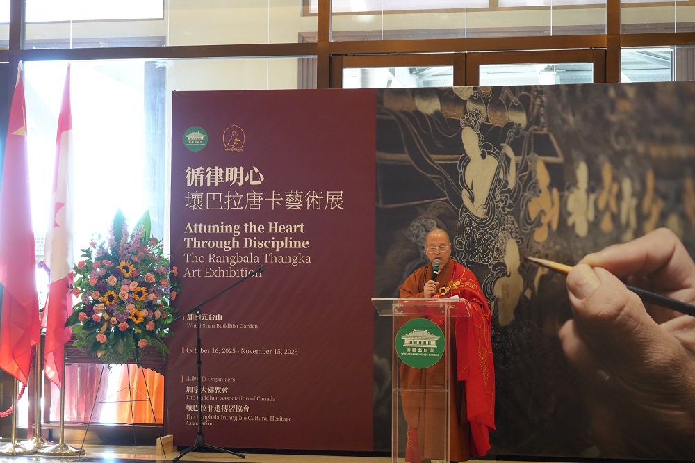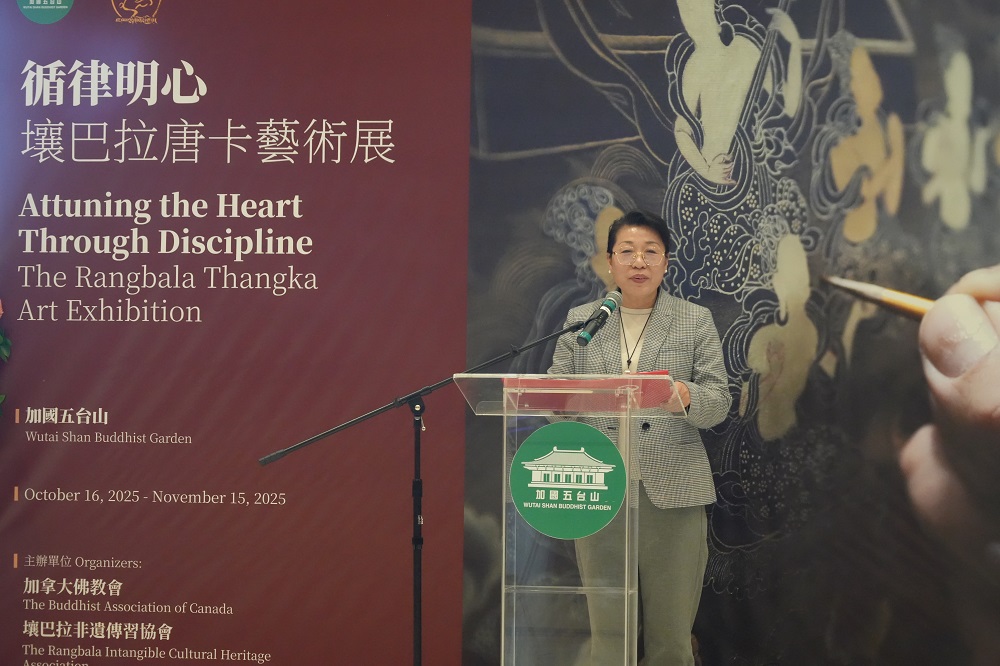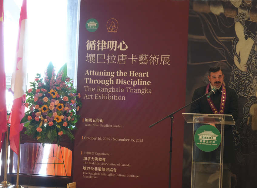 加拿大视传媒报道】2025年10月16日,加拿大史上规模最大的唐卡绘画艺术展——《循律明心·壤巴拉唐卡艺术展》,在加国五台山善财厅隆重开幕。活动吸引了来自政界、艺术界、宗教界及文化界的嘉宾,以及众多艺术爱好者前来观展。