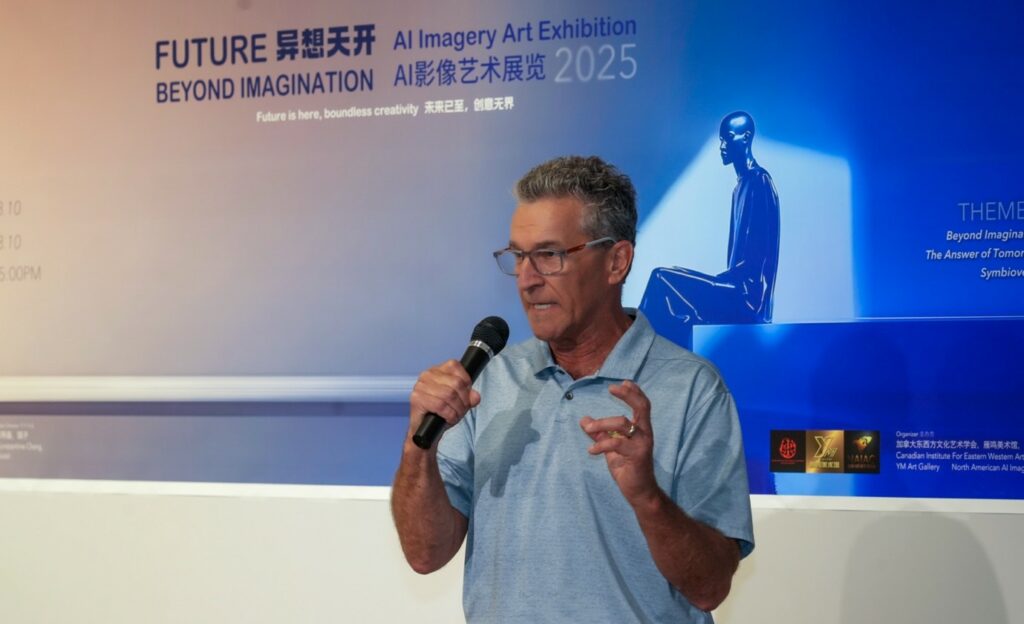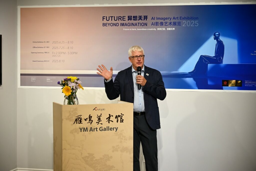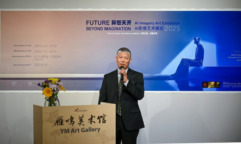 加拿大视传媒报道】2025年7月25日,由加拿大东西方文化艺术学会、雁鸣美术馆、北美AI影像艺术中心联合主办的《Future|Beyond Imagination 2025》AI影像艺术展正式拉开线下序幕。展览在多伦多雁鸣美术馆隆重举行,汇聚了全球艺术家、技术创作者、政商文化界代表,共同见证AI与艺术交融的新时代。