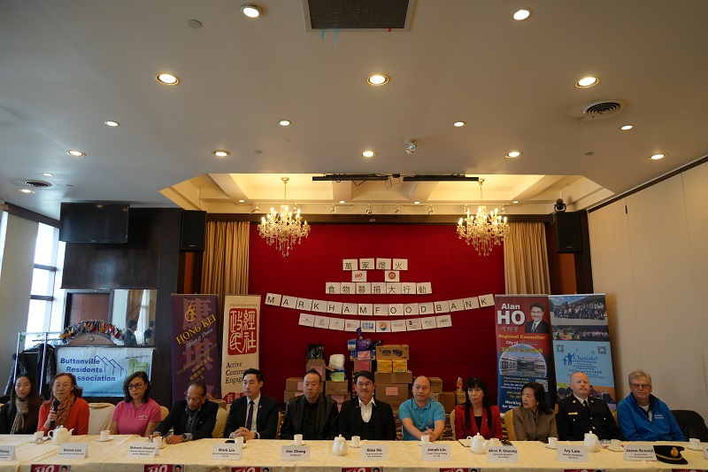 记者会由议员办公室 Scott Xie 主持,多个合作单位发言,包括 Foodymart 鼎泰超市、Cherish Integrated Services、Sanatan Mandir Cultural Centre、政经民社 A.C.E.、Buttonville 居民协会、康琪会、Markham Community Link 等。其后,何议员与企业及团体代表一同前往食物周济厍递交物资。