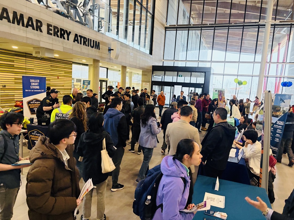 当天下午2时活动开始前,现场已有不少求职者提前到场等候。招聘会汇聚多个行业和领域的参展机构,包括约克区政府、约克区公车局、约克区救护服务、万锦消防局等公共部门,以及A-Z Insurance、Acts Art Studio、Essence Electrical Ltd、Lintex Industrial Ltd.、M2B Auto Inc.、MRD Financial、NOIC Academy、PHD Staging、Reno Compass、Sun Life和中国工商银行等企业和机构。
