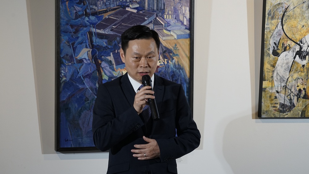 组委会共同主席、大西洋文化艺术交流协会会长于琮章先生在致辞中回顾了大西洋美术家协会十年来的发展历程,并表示此次展览汇聚了专业艺术家的心血结晶,是对历史的尊重和对和平的礼赞。