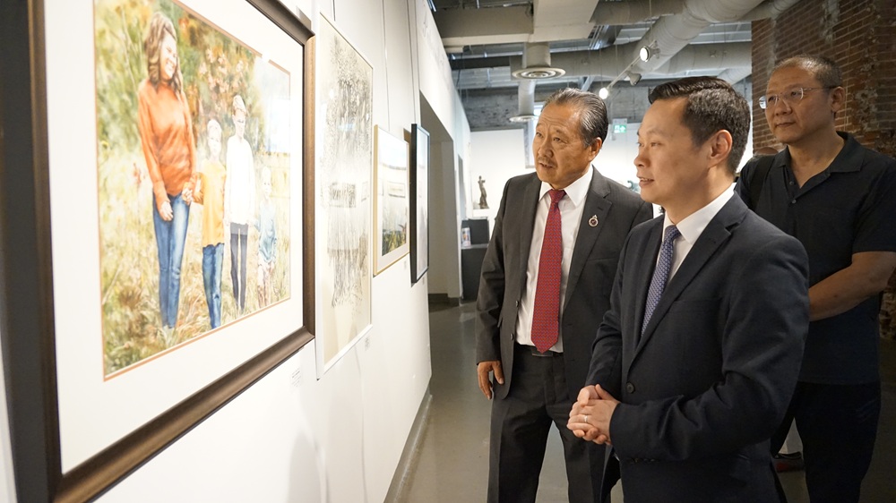 中国驻多伦多总领馆副总领事程洪波先生也出席并致辞:“画展开幕恰逢七七事变纪念日,意义尤为深远。艺术家的创作承载着对历史的回响,也承担着时代的使命。”
