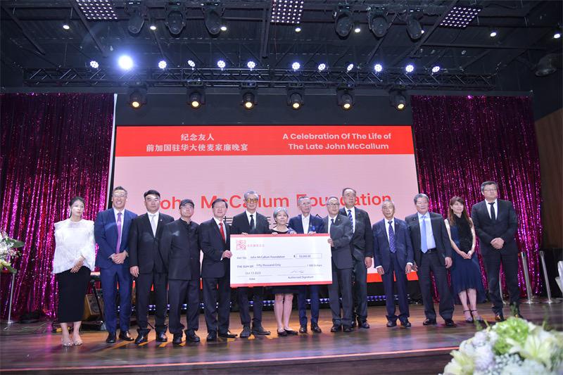 当晚,主办方还宣布成立“麦家廉专项基金”。联合主席及筹委代表现场将5万加元善款捐赠给麦家廉夫人 Nancy,用以延续他生前热爱的公共事业与中加友好精神。