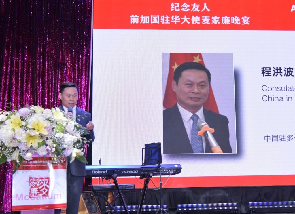 加拿大视传媒报道】10月13日,由万锦市华人联合总会(FCCM)与万锦市副市长陈国治、会计师沈浩倡导,十位联合主席共同主办的“纪念前加拿大驻华大使麦家廉(John McCallum)追思会”在万锦市金瑞林餐厅隆重举行。麦家廉的家人及社会各界来宾500余人出席,共同缅怀这位深受尊敬的政治家与外交家。
