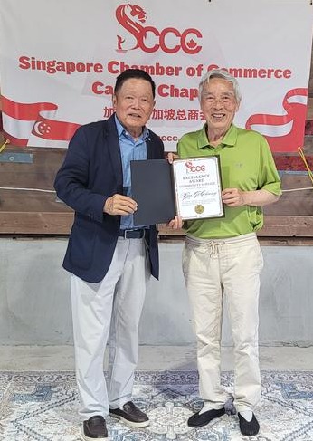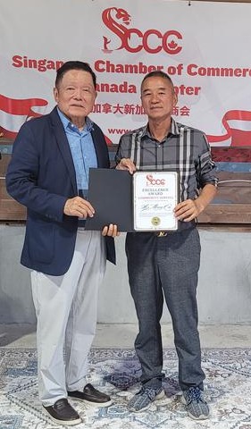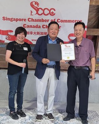 活动中,加拿大联邦前参议员胡子修正式获颁“名誉会长”证书。作为来自新加坡的资深政界人士,胡子修参议员在致辞中感慨地说:“终于有一个新加坡商会了”。