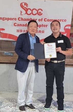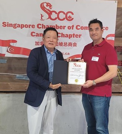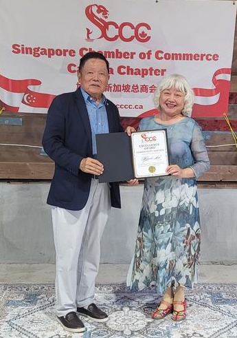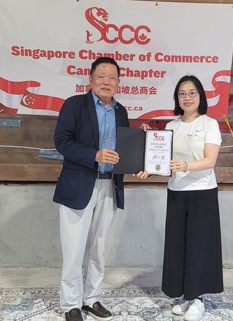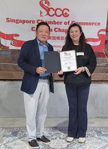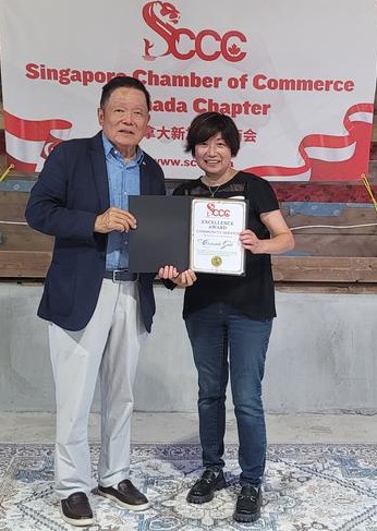 这次活动的主持人Connie副会长详细介绍了商会成立的宗旨就是促进并加强加拿大和新加坡、马来西亚以及东南亚其他国家之间的商业往来与合作。该商会不仅仅是一个大家互助互惠的社交平台,更是一座促进加新两国间贸易、投资和职业发展的桥梁。我们的目标是为我们的会员提供加新两地的商业机会,并助力会员之间建立联系、展开合作,在商业上共同取得成功。在此活动上,商会颁发了“社区贡献奖”,以表彰为推动社区发展作出贡献的商会会员。