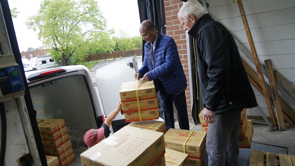 在捐赠活动尾声,罗庚议员与多位义工一同协助将面条装车,由万锦食物银行志工Paul Carroll与Steve负责运送至仓库,为有需要的家庭送去温暖与希望。