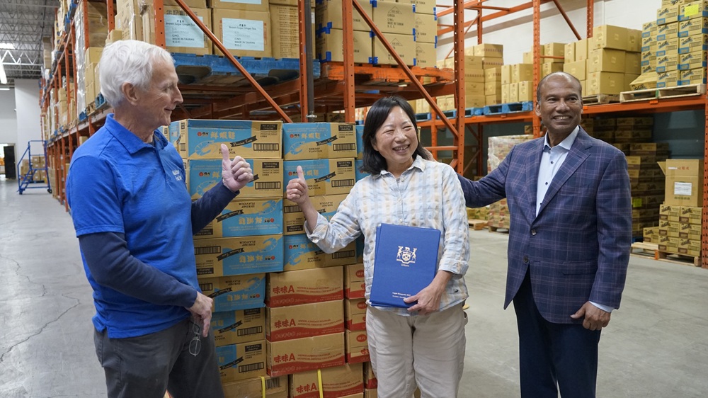 【加拿大视传媒报道】加拿大最大台湾食品代理商国华食品贸易公司于5月22日举行了一场充满爱心的捐赠仪式,向万锦食物银行(Markham Food Bank)捐赠了100箱台湾风味面条,总值约3600加元,以实际行动支持本地弱势群体。