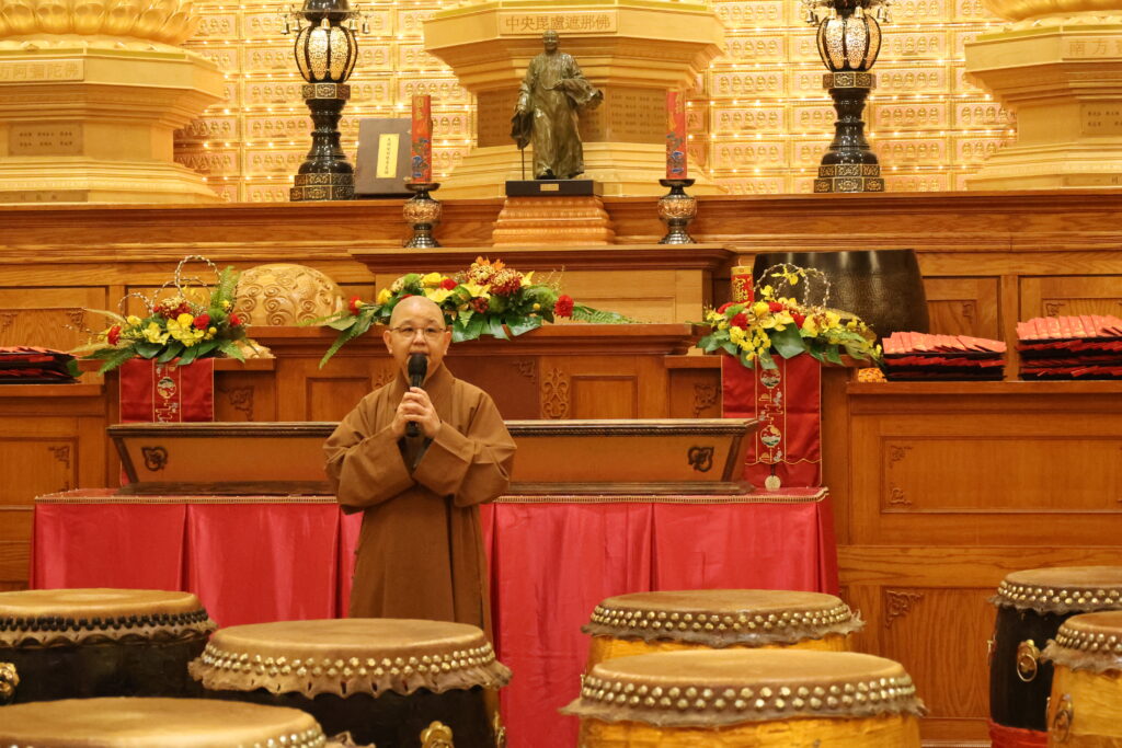多伦多佛光山住持觉凡法师开示指出,感谢义工菩萨的护持、表演团队的参与,以及人间学院各授课老师的辛劳,期许大家以包容和爱心之行动落实社会和谐的宏大理念;国际佛光会多伦多协会会长曹𡶶岩分享,强调佛光人的四给精神,要从身边做起,以此实践和谐和共生的主题,为文化飨宴送上祝福与勉励。