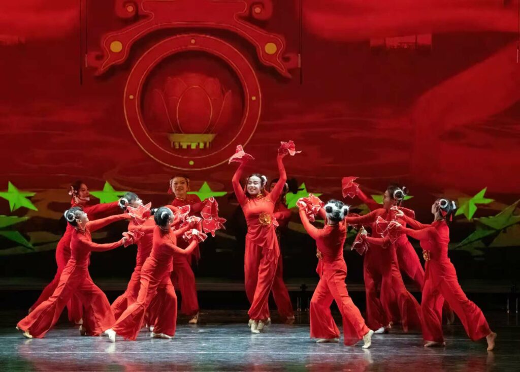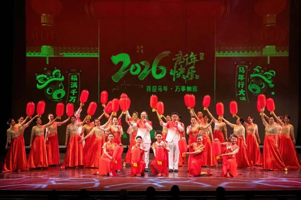 演出在大合唱《挂红灯》中拉开帷幕。喜庆而昂扬的旋律在指挥张振国老师的引领下层层展开,舞台瞬间被热烈的气氛点燃。随后,开场舞三连跳《好运全来》《桃花红,杏花白》《北京金山上》等节目依次登场,舞蹈与歌声交织,为观众铺展开一幅生动的艺术画卷。
