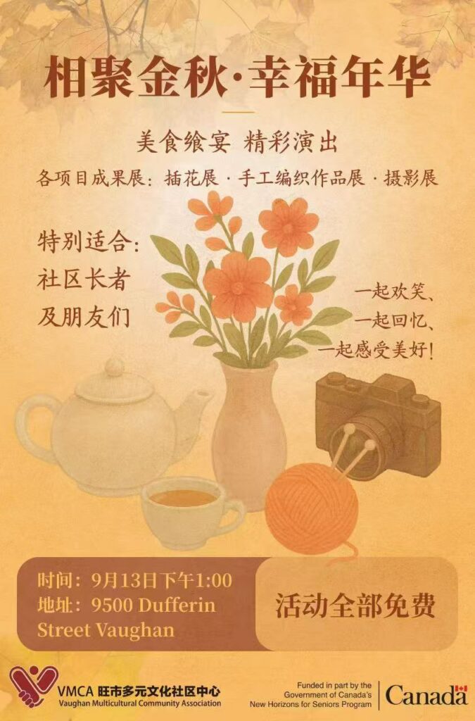 【加拿大视传媒报道】2025年9月13日,加拿大旺市多元文化中心(VMCA)在秋意渐浓的九月举办了一年一度的社区联欢活动——“相聚金秋·幸福年华”。活动吸引了近百位社区居民和会员参与,现场气氛温馨而热烈。
