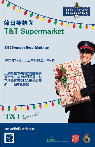 约克区警队呼吁居民、企业及合作伙伴踊跃参与,“成为今年的节日英雄”,共同为社区带来温暖而有意义的节日季。(LJI by Rita)