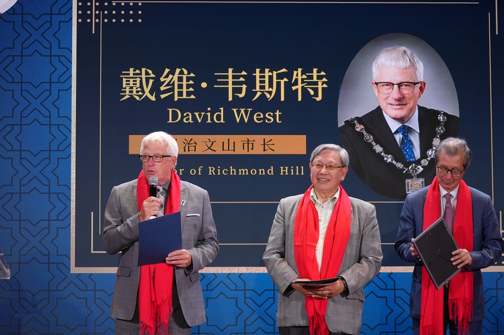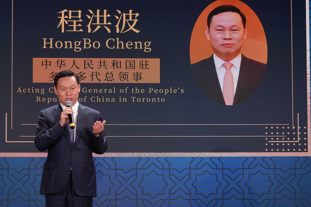 中国驻多伦多代总领事程洪波代表总领馆向总会致以热烈祝贺,称赞华联总会在团结侨胞、维护权益、弘扬文化和促进中加友谊等方面的杰出贡献。他指出:“四十年是新的起点;五十五年是友谊的见证;七十六年是民族复兴的新里程。” 程代总领事同时强调中加合作成果丰硕,期望侨团继续讲好中国故事,推动两国民间交流。