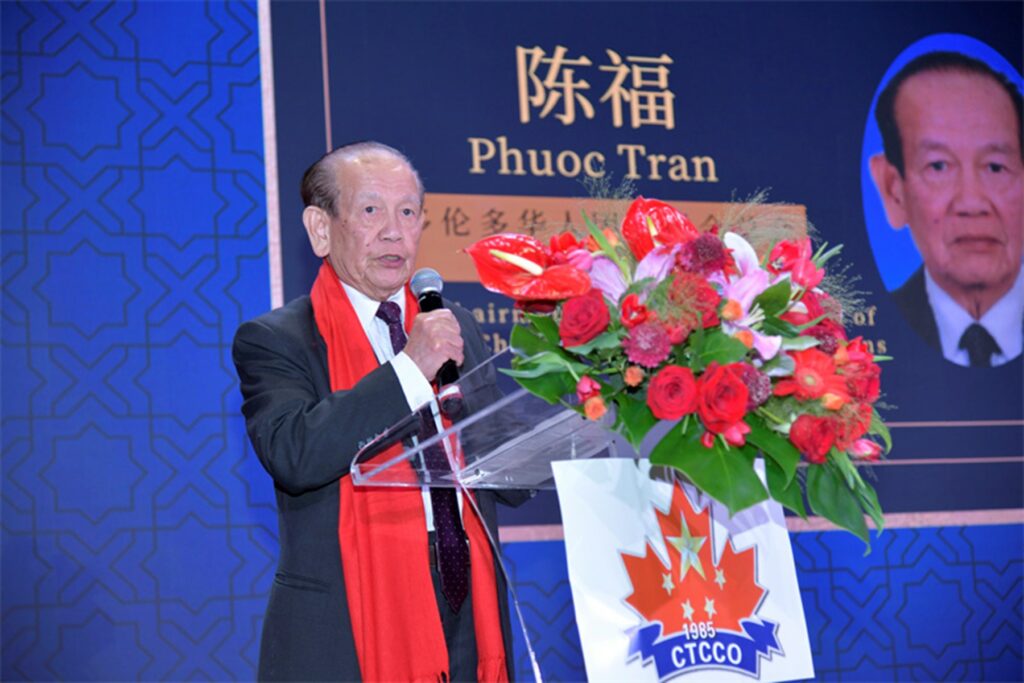 副主席陈福在现场代表总会致辞,回忆初创时期的艰辛,感谢历届理事及侨胞支持,并表示总会将继续鼓励华人参政议政,积极融入加拿大多元社会。