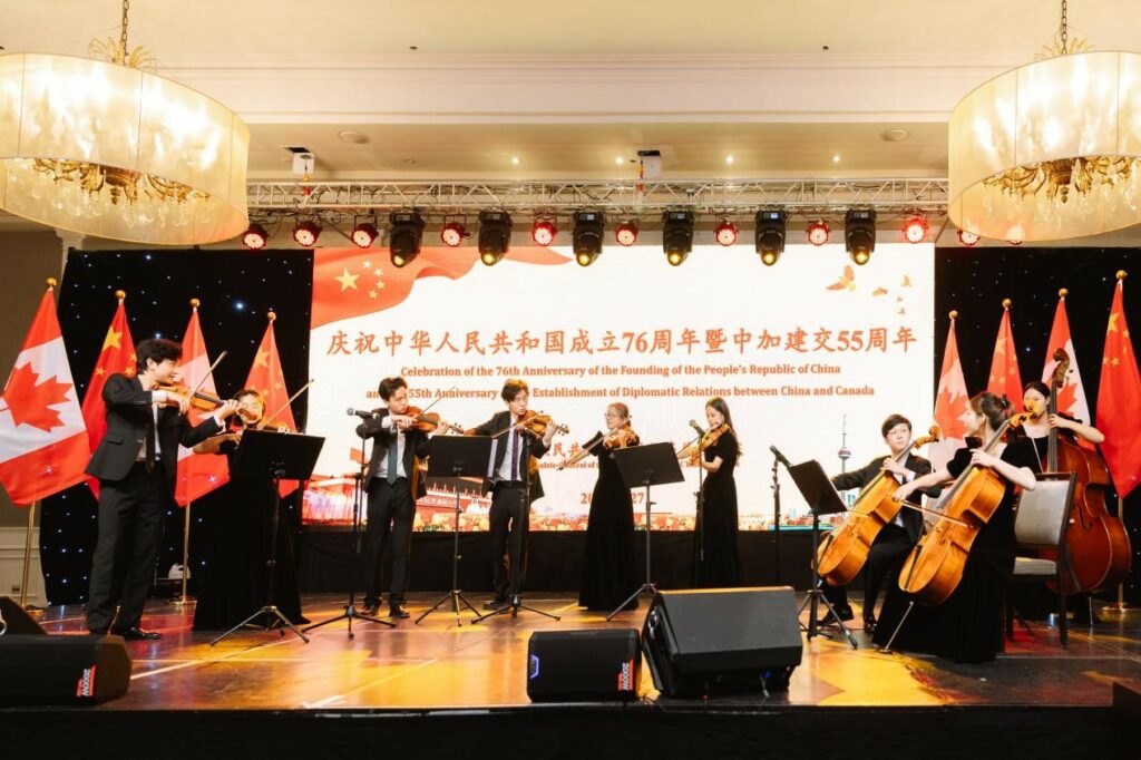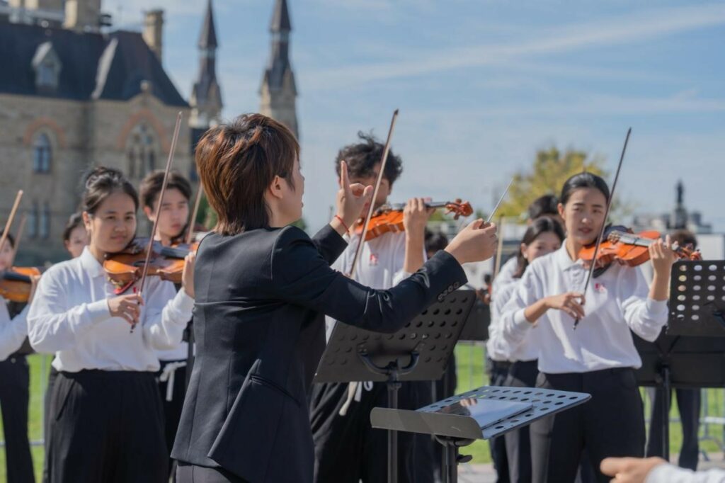 9月26日,“中国银行之夜·天涯共此时”交响音乐会在Meridian Arts Centre的George Weston Recital Hall举行。来自中国音乐学院附中的中国少年爱乐乐团与多伦多艺术家合作演出,曲目包括《节日序曲》《炎黄风情》以及《黄河大合唱》。演出高潮部分,全场观众与乐团共同合唱《保卫黄河》。