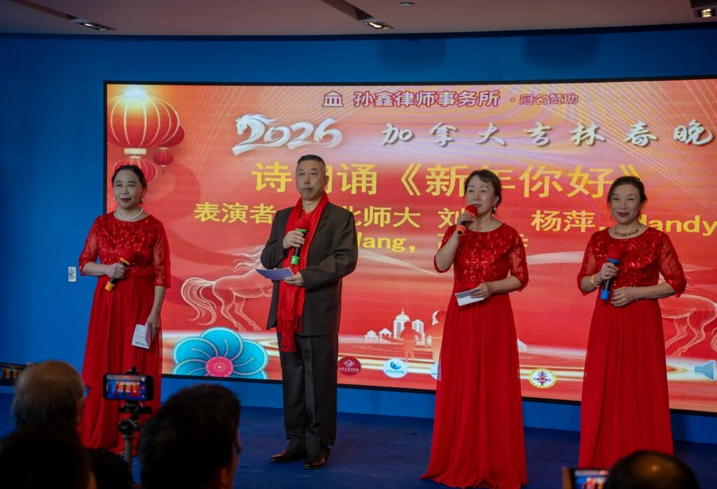 律回春渐,新元肇启。近日,由加拿大吉林协会联合加拿大吉林总商会、吉林大学加拿大校友会、东北师范大学加拿大校友会、加拿大长春同乡会共同举办的“2026加拿大吉林春晚”在多伦多隆重举行。这不仅是一场视听交织的艺术盛会,更是一场集理事会就职典礼、社区公益表彰、家乡特色美食于一体的乡亲大聚会。来自大多伦多地区的吉林老乡、各界政要、兄弟社团及媒体代表欢聚一堂,共度马年新春。