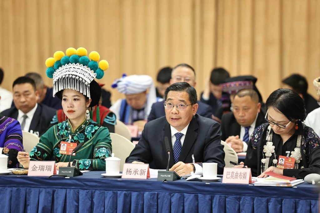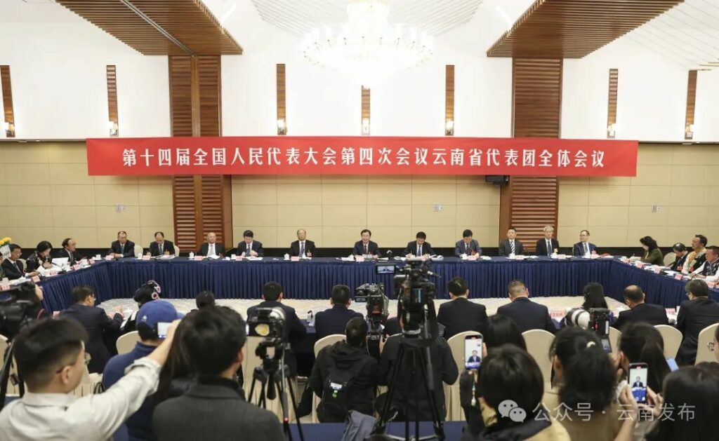 3月7日,出席十四届全国人大四次会议的云南省代表团举行集中审议,会议向境内外媒体开放。陈飞 胡妤雅 摄