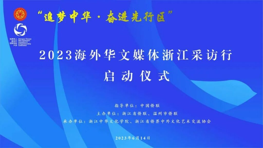 据悉,由国务院侨办、中国侨联和浙江省人民政府共同主办的华侨华人新生代创新创业大会(“侨创会”)拟于2023年8月下旬在温州举办,本次2023海外华文媒体浙江采访行是“侨创会”的重要子活动之一。