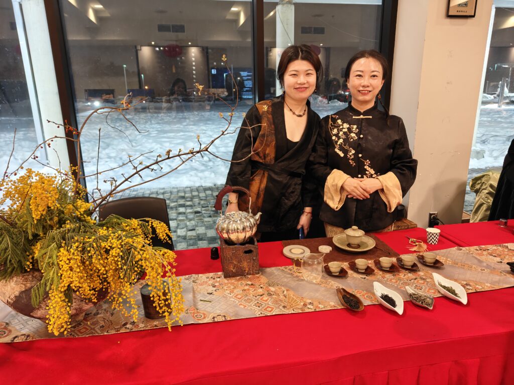 文化展示区同样人气高涨,成为嘉宾沉浸式体验中华文化的重要窗口。汪明明现场进行中国茶艺展示,从选茶、温器到冲泡、奉茶,举止雅致、讲解细致,在清雅茶香中传递茶文化的礼序与意境。书法家李祥民挥毫泼墨,展示汉字之美与书法艺术神韵,笔力遒劲洒脱,以春联与“福”字寄托新春祝福。剪纸艺术家李西秦以一把剪刀、一张红纸,创作寓意吉祥的剪纸作品,生动呈现民间艺术的巧思与匠心。张晓丽的面塑作品造型灵动、色彩明快,将传统技艺与生活情趣巧妙融合。祥德斋糕点造型精致、风味醇厚,让嘉宾在品尝之间感受中国饮食文化的传承创新与年俗温情。