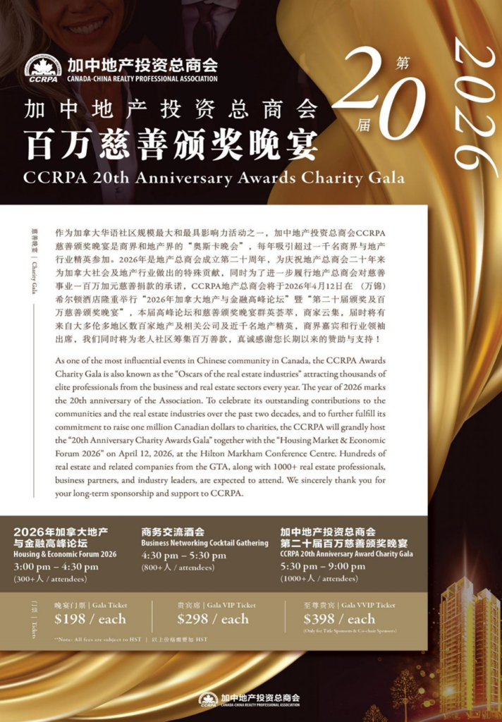 - 加拿大地产与金融高峰论坛(Real Estate & Economic Forum):15:00–16:30