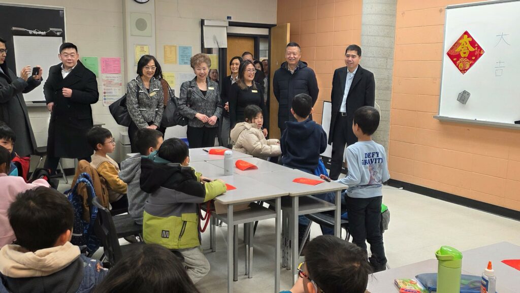 【加拿大视传媒报道】中国驻加拿大大使王镝于2026年1月30日,亲访孟尝会中文学校北约克分校,与师生进行亲切交流、欣赏学生的功课习作、手工及精彩贺年表演,并向学校馈赠中文书籍及马年小礼物。