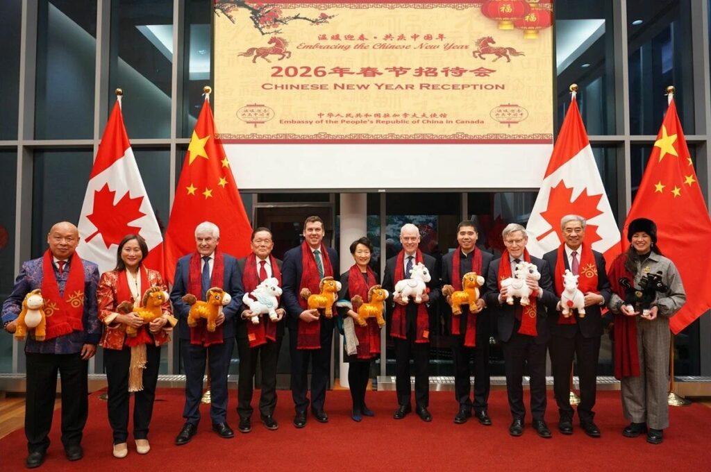 加拿大视传媒报道】2月10日,驻加拿大使馆隆重举办“温暖迎春·共庆中国年”2026年春节招待会。加外交部副部长莫里森(David Morrison)、总理驻议会秘书布洛伊斯(Kody Blois)、参议员吉尼亚克(Clément Gignac)、众议员罗耶(Zoe Royer)、前参议员胡子修(Victor Oh)等10余名政府高官和参众议员及在加华侨华人、中资机构、留学生代表等约200人出席。