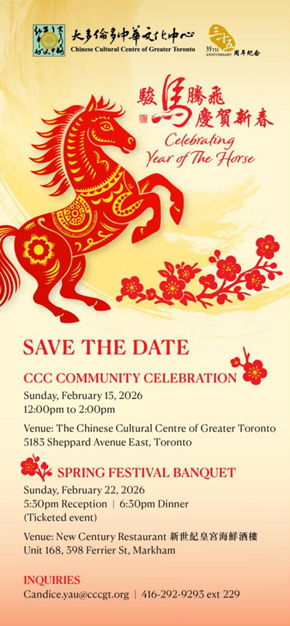 2026多伦多“欢乐春节”系列活动于2026年1月至2月举办,共十余场活动。