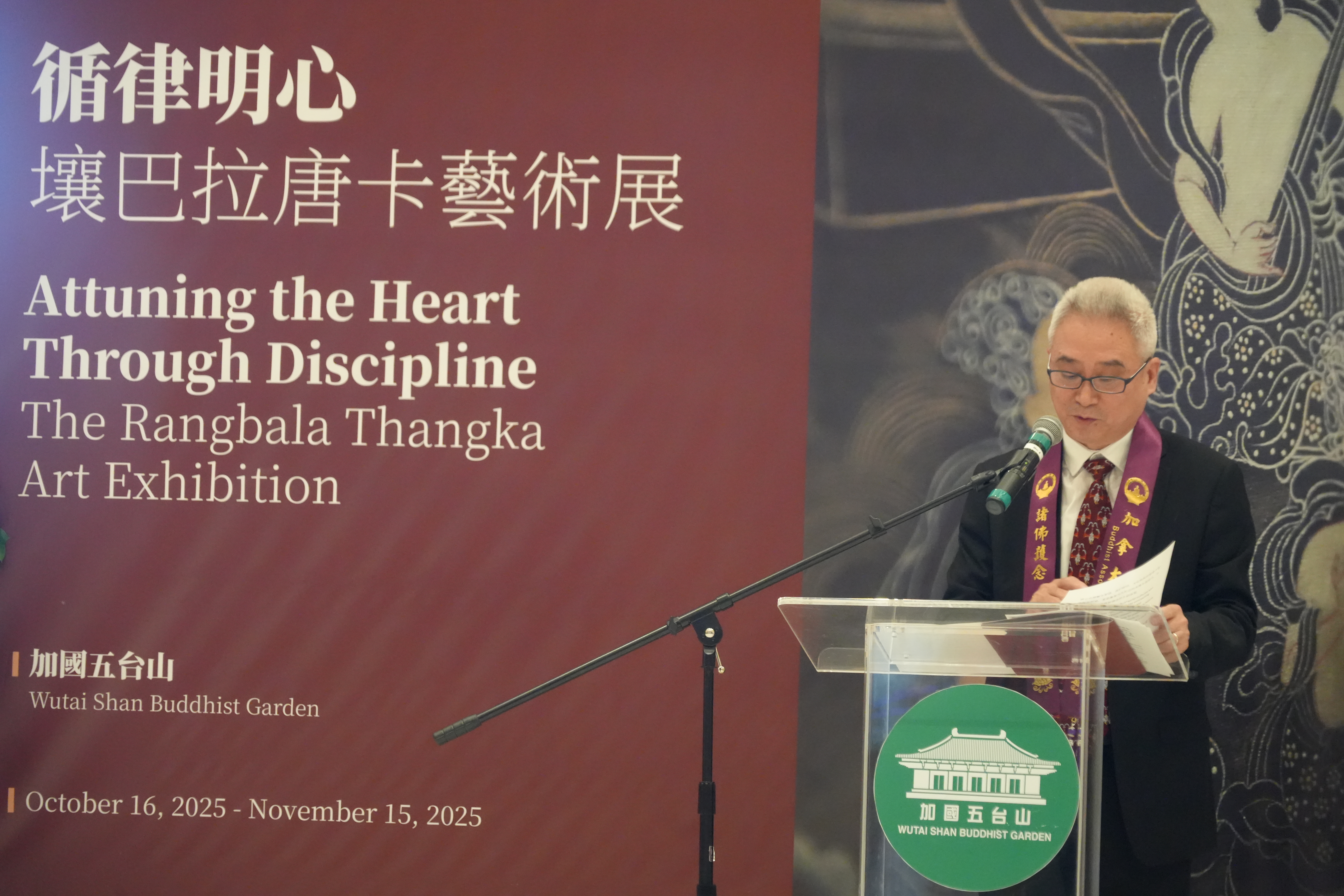 加拿大视传媒报道】2025年10月16日,加拿大史上规模最大的唐卡绘画艺术展——《循律明心·壤巴拉唐卡艺术展》,在加国五台山善财厅隆重开幕。活动吸引了来自政界、艺术界、宗教界及文化界的嘉宾,以及众多艺术爱好者前来观展。