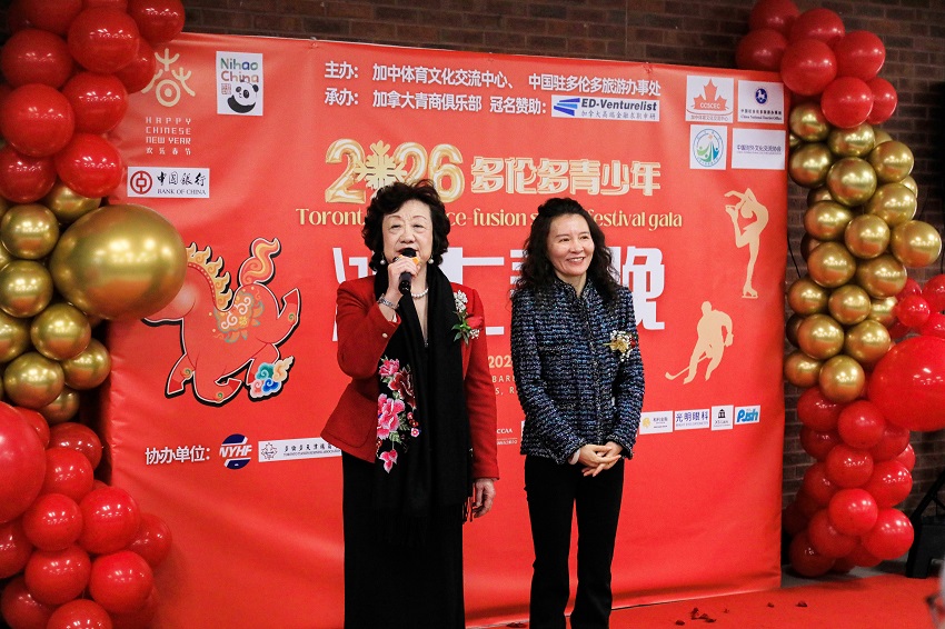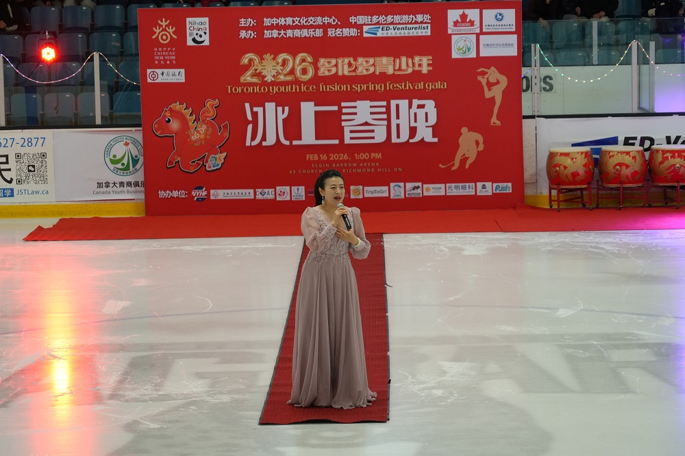 2026多伦多青少年冰上春晚组委会主席、加中体育文化交流中心理事长韩进雯代表主办方致辞。她表示,在家庭日与农历除夕这一特殊时刻举办冰上春晚,既温暖人心,也意义非凡。四年来,活动以冰雪运动的速度与中华文化的厚度,逐步发展为多伦多“全球华人欢乐春节”系列的重要名片。