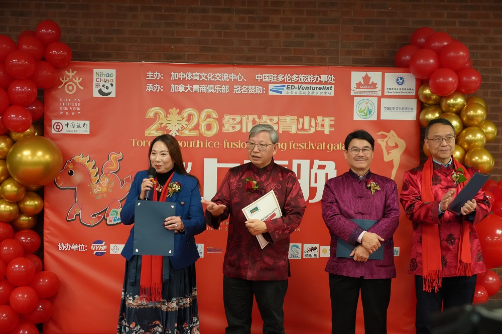中国驻多伦多总领馆总领事罗伟东出席冰上春晚并致辞,向各界致以马年新春祝福。他表示,冰上春晚作为“欢乐春节”品牌的重要项目,将中华节庆文化与冰雪运动巧妙融合,不仅生动展示中华文化魅力,也为中加文化与体育交流搭建了特色平台。他期待两国青少年以冰为媒、以艺会友,成为中加友好的传承者与推动者。