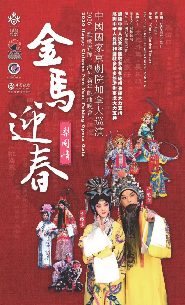 【加拿大视传媒 多伦多报道】2026年1月13日,由加中文化发展协会(CCCDA)与加拿大中国戏曲艺术协会联合主办的“欢乐春节—海外新年戏曲晚会”新闻发布会在多伦多活力广场(Woodside Square)举行。主办方在发布会上宣布,著名京剧表演艺术家于魁智、李胜素将率中国国家京剧院三十余位演员,于2026年2月赴加拿大展开巡回演出,行程覆盖渥太华、蒙特利尔、多伦多三座城市。