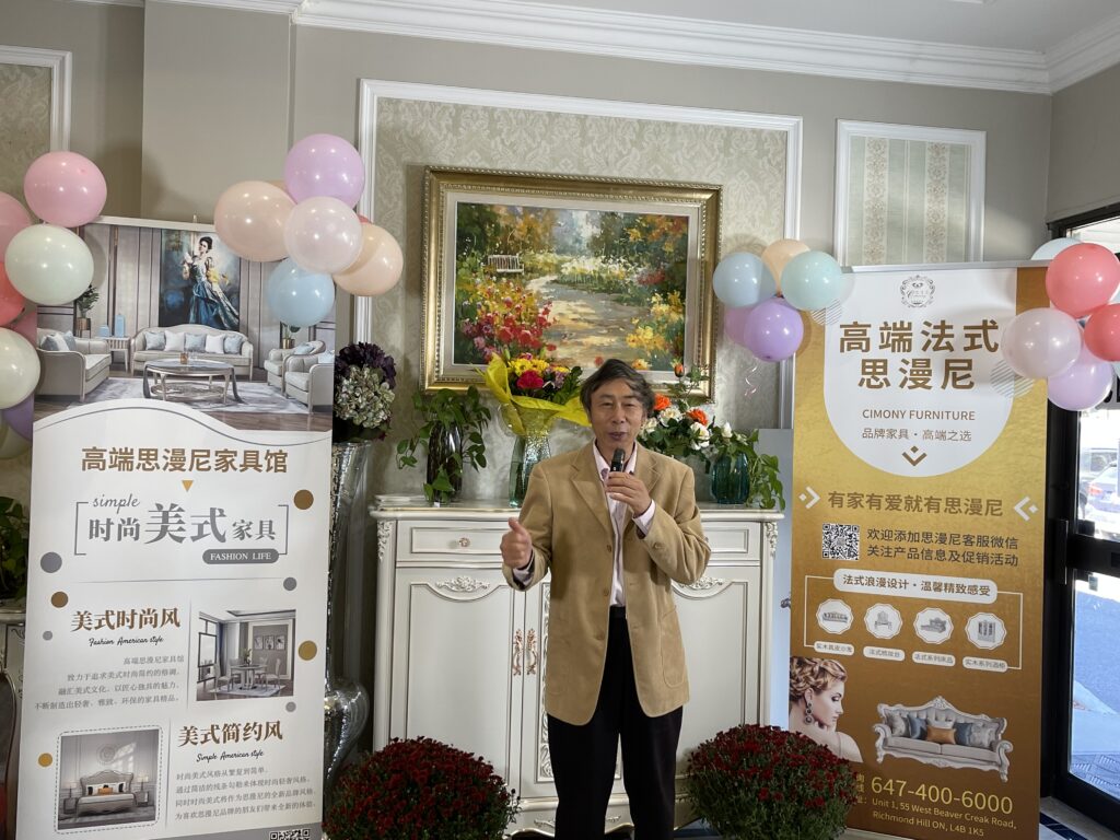 加中地产投资总商会会长、万锦第二区市议员候选人孙志峰先生说他是以三重身份来参加,高端思漫尼家具馆是加中地产投资总商会的会员和赞助商,他有义务来帮助思漫尼家具店拓展业务,其二是万锦第二区市议员候选人身份,希望看到华裔企业家能立足本地,为加拿大商业做贡献,其三他自己就是思漫尼家具的客户和粉丝,他家里都是思漫尼品牌家具,所以预祝思漫尼品牌家具能在北美大展宏图。